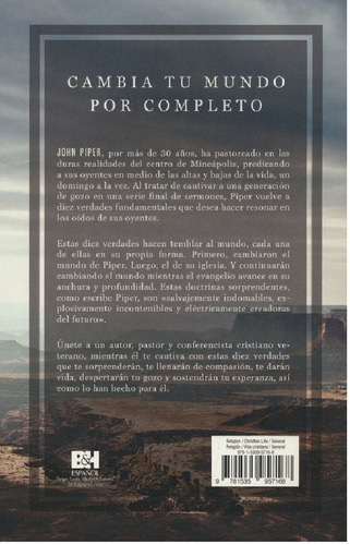 Cuando se trató de capturar una generación de alegría en una última serie de sermones, recurrió a diez verdades importantes para dejar capturados los oídos de su congregación. Estas son verdades que sacuden al mundo, cada una asombrosa a su modo. Primero, estas verdades pusieron el mundo de John al revés, luego a su iglesia y ahora ellas continuarán poniendo el mundo al revés a medida que el evangelio de Cristo crece en distancia y profundidad. Estas doctrinas, como Piper las define, son «tremendamente indomables, explosivamente incontenibles y eléctricamente visionarias».