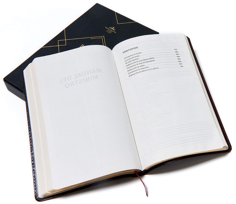 La Biblia del Ministro es ideal para su uso en el púlpito por el tipo de sus letras (tamaño 8.5 puntos), amplios márgenes y extensas notas auxiliares de muchos de los principales predicadores y líderes de la iglesia de hoy. La Biblia del Ministro coloca las ayudas necesarias en el centro de la Biblia y en una fuente más grande que el texto de la Biblia. Esta ubicación y composición permite que la Biblia se mantenga abierta fácilmente en la mano del ministro o en el púlpito, haciéndola muy legible en el momento de su uso. Es un elemento de presentación perfecto para una variedad de ocasiones especiales, incluido el mes de agradecimiento al pastor. Disponible en RVR1960, una traducción tradicional y verdadera.