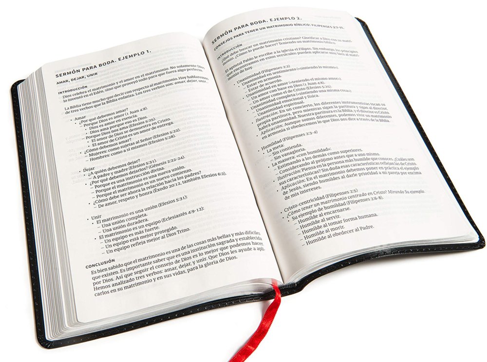Las Biblias para ministros son ideales para usar en el púlpito con su tipo de fuente (tamaño de 8,5 puntos), márgenes amplios y extensas notas auxiliares de muchos de los principales predicadores y líderes de la iglesia de la actualidad. La Biblia del Ministro coloca las ayudas necesarias en el medio de la Biblia y en una fuente más grande que el texto de la Biblia. Esta ubicación y composición tipográfica permite que la Biblia esté equilibrada, permanezca fácilmente abierta en la mano del ministro o en el púlpito y sea muy legible. Son un elemento de presentación perfecto para una variedad de ocasiones especiales, incluido el Mes de agradecimiento al pastor. Disponible en el RVR 1960 una traducción tradicional y confiable.