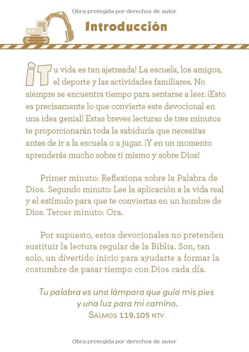 Creado solo para niños de 8 a 12 años, este libro ofrece 90 lecturas que hablan directamente de los intereses, necesidades y sueños que tienen ustedes, “hombres en progreso”, con muchas referencias divertidas a los deportes, los videojuegos, los aparatos electrónicos y todas esas cosas que los hacen disfrutar.