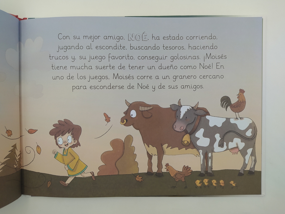 En este cuento a Moisés, el perro de Noé, le encanta jugar con los niños y por eso todos lo adoran. Pero un día Moisés se puso muy enfermo y aunque los niños intentaron hacer todo lo que pudieron para ayudarle, nada parecía tener resultado. Se mantuvieron a su lado mimándole y justo cuando parecía estar en peor estado, ¡de repente mejoró! ¿Qué le habrá pasado?