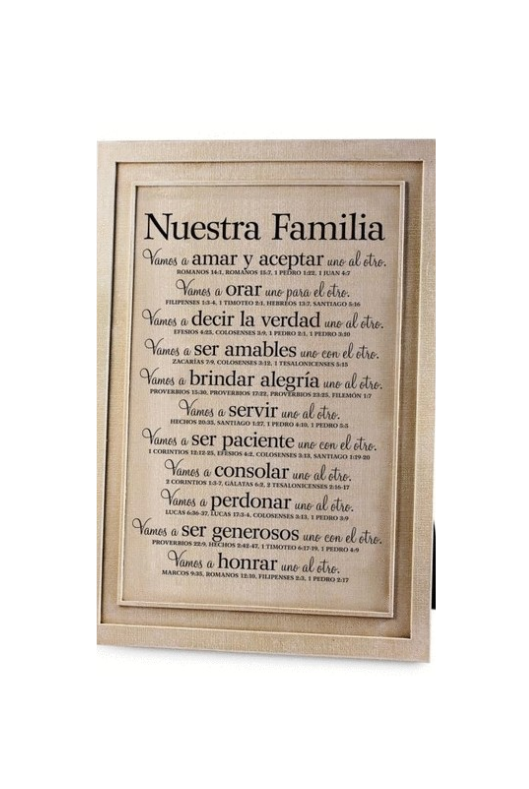 Placa de mesa para la familia Cristiana con referencias bíblicas y palabras de apoyo y amor. Un regalo de familia único. Resina pintada a mano; tamaño 7.75″ x 11.5″; caballete de terciopelo en la parte posterior con la opción de colgar en la pared; viene en caja.