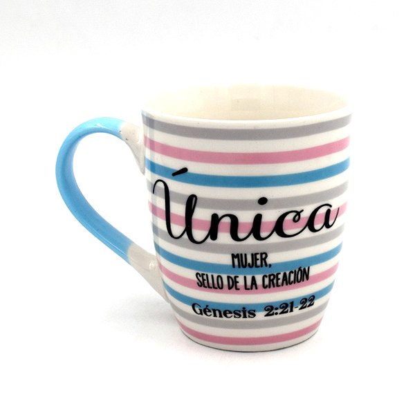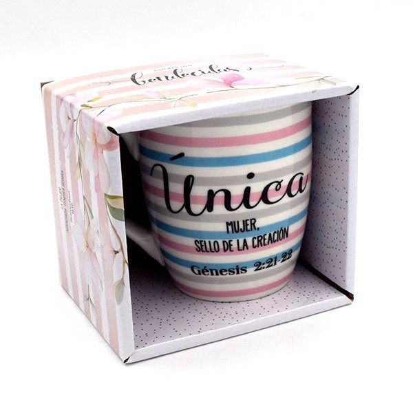 Taza “Única” Colección Bendecidas con el versículo de Génesis 2:21-22 “Única mujer, sello de la creación”